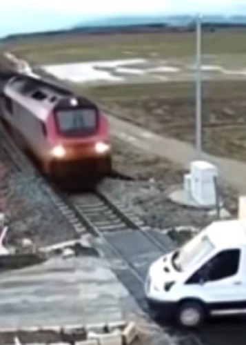 (فیلم) اقدام عجیب راننده خودروی وانت روی ریل قطار