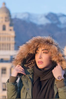 استایل زمستانه سارا منجزیپور همسر محمدعلیزاده؛ استایلی کرم قهوهای رنگ با هدپیس ساده و درخشش حلقه جواهر که استایلش رو کامل کرد+عکس