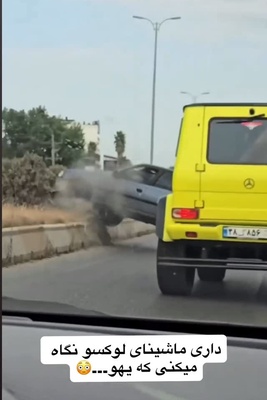 ببینید؛ لحظه وحشتناک چپ کردن 405 با فاصله میلیمتری از خودروی فوق لاکچری بنز جی 500 زرد + ویدئو