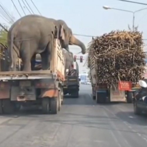 (فیلم) غذا خوردن فیل در ترافیک