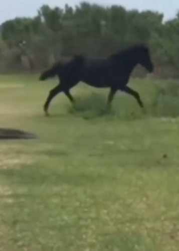 (فیلم) حمله اسب به تمساح در حال استراحت