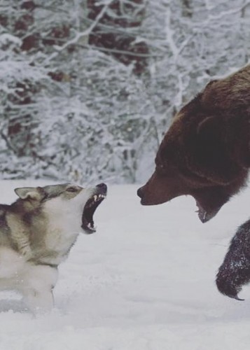 (فیلم) فرار خرس گریزلی از دست گرگ سفید