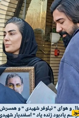 حال و هوای غم زده خانه نیلوفر شهیدی در مراسم یادبود پدرش «اسفندیار شهیدی» با چیدمان طاق گل های اعیانی و بنر تسلیت+فیلم