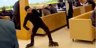 خلاقیت گارسونی که برایش گران تمام شد؛ وقتی به جای مشتری، زمینِ رستوران را سیر کرد😂😂+فیلم