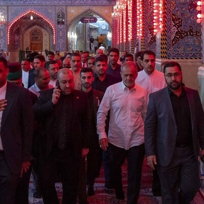 (فیلم) زیارت حرم حضرت ابوالفضل (ع) توسط پزشکیان در ازدحام شدید جمعیت