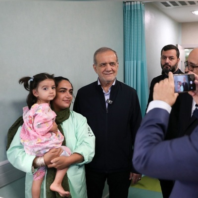 (فیلم) عیادت پزشکیان از بچههای بستری شده در بیمارستان فیاض بخش و توصیه به مادر یک دختر کوچولو: مواظب باش دیگه، تب کنه باید پاشویه کنی...