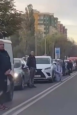 (ویدیو) رانندگان اوکراین به احترام سربازان کشته شده جنگ در وسط اتوبان زانو زدند