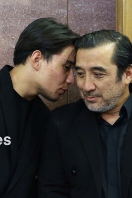 چهره غمزده و کمر خمیده خداداد عزیزی هنگام خواندن نماز میت در مراسم تشییع پدرش/ روحش شاد و یادش گرامی+عکس
