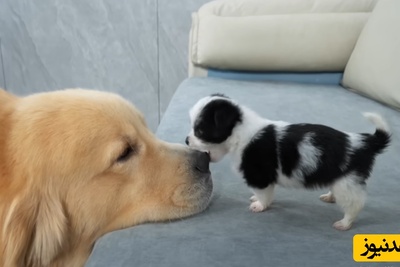 فیلم خندهدار لحظات حمله بامزه توله سگ ناز به سگ غول پیکر