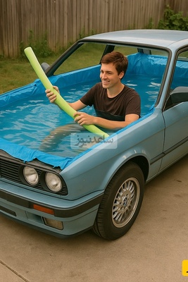 خلاقیت حماسهآفرین جوان کلهشق برای تبدیل BMW کروک به استخر / از ماشین رویایی تا استخر سرگرمکننده 🤣
