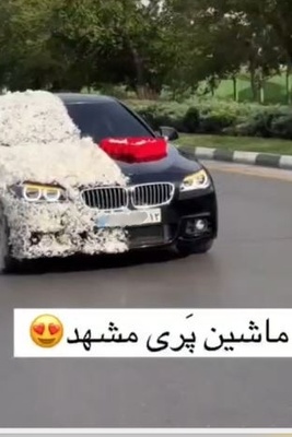 خلاقیت عجیب عروس و داماد مشهدی در تزئین نصف ماشین با پر سفید پرنده جوری که عروس اصلا دیده نشه+ویدیو
