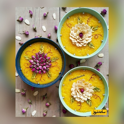 ایدههای زیبای تزیین شله زرد ویژه نذری ماه محرم با دارچین، بادام و گل محمدی + عکس