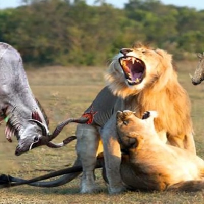 (ویدئو) حیات وحش ؛ مستند حیوانات/ نبرد خونین گوزن وحشی و شیر