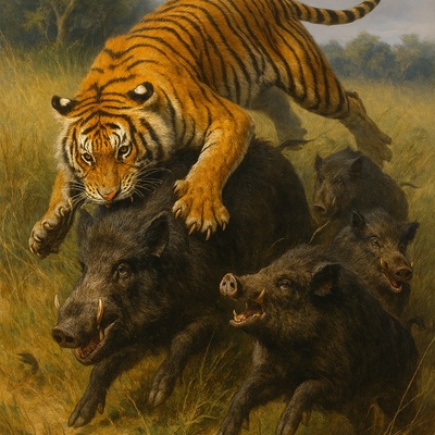 ویدئو| مستند حیات وحش؛ لحظه هیجانانگیز و نفسگیر حمله جسورانه ببر به گله گرازها
