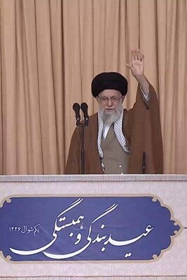(فیلم) شعار حیدر حیدر مردم تهران پیش از آغاز خطبههای نماز عید فطر و صلابت رهبر انقلاب در 85 سالگی