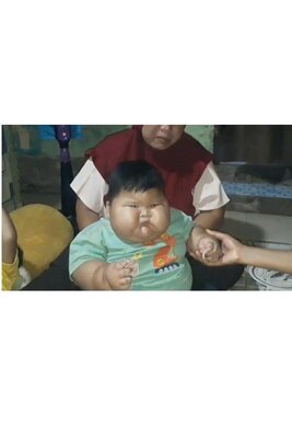 چاق ترین پسر 16 ماهه ای که مجبور است لباس های پدرش را بپوشد+ تصاویر