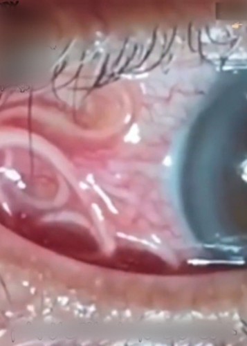 (فیلم) خارج کردن کرم ۱۵ سانتی از چشم