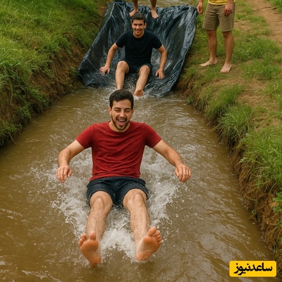 ابتکار بامزه چند جوان باهوش در استفاده از جوی آب به عنوان سرسره و لذت بردن از این تفریح بدون هزینه+ویدیو/ سُرسُره آبی مناطق محروم همینه و بس😂