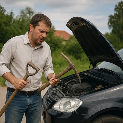 خلاقیت خنده دار اوستای مکانیک با لاستیک پاره برای کشاندن مشتری به داخل تعمیرگاه وجه دیگری از نبوغ را به تصویر کشید/ امکانات0 ضریب هوشی 100