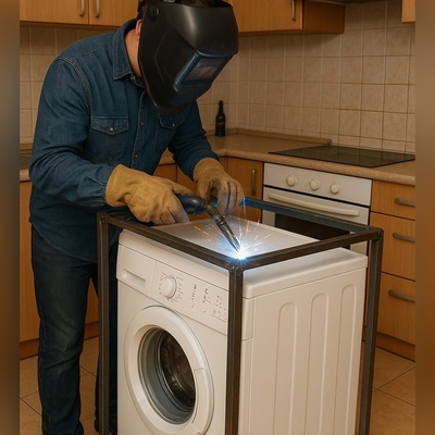خلاقیت خندهدار اوستا جوشکار برای حل مشکل حرکت لباسشویی در کف آشپزخانه مرزهای باهوشی رو جابجا کرد/ اینو باید همینجوری مهار کرد وگرنه فردا تو کوچه میوفته دنبال مردم😂