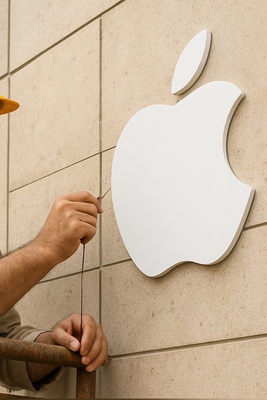 خلاقیت مشاغل؛ اقدام خندهدار نماکار باکلاس در استفاده از لوگوی اَپِل برای طراحی نمای ساختمان +ویدیو/ میگن استیو جابز بعد دیدن این توی قبر دو بار سکته کرده😂