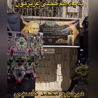 احساسات مردم فوران کرد؛ بغض و اندوه در محله محمد کاسبی / نصب حجله و انبوه بنرهای تسلیت مقابل خانه این بازیگر محبوب و پیشکسوت+ ویدیو