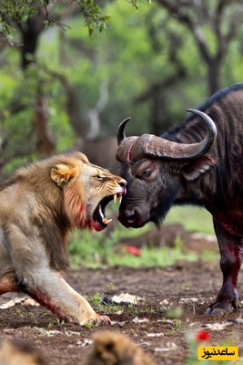 حیات وحش؛ مستند حیات وحش: گاو وحشی گردن شیر ماده را با شاخ اش سوراخ کرد +فیلم
