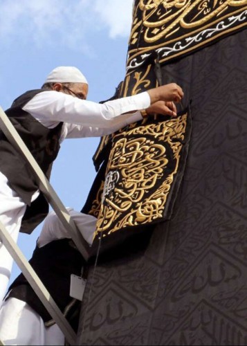 (فیلم) بر افراشتن پرده جدید بر فراز خانه خدا با شروع مناسک حج