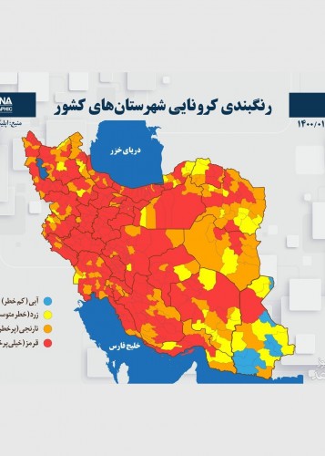 رنگبندی کرونایی شهرستانهای کشور (۱۴۰۰/۰۱/۱۸)