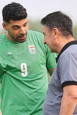 روزبه چشمی با کت و شلوار به عنوان کاپیتان تیم ملی در کنار قلعه نویی
