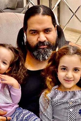 (تصویر) یادی کنیم از شیطنت بچه های رضا صادقی و خرگوشی بستن موهای پدرشان!/ لبخند رضایت خاصی تو چشم کوچولوهه است😂