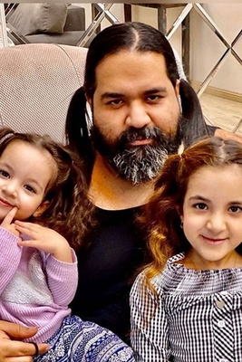 عکس خانوادگی رضا صادقی به همراه همسر و دو دخترش / ماشالا، چشم نخورن ایشالا