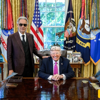 (ویدیو) دیدار خواننده مشهور با ترامپ/ بوچلی با صدای بهشتیاش همه را مات و مبهوت کرد...