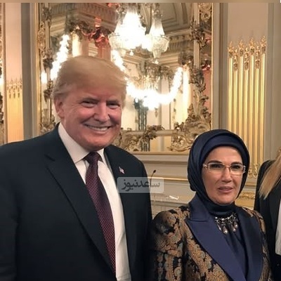 (ویدیو) زن اردوغان جلوی ترامپ کم مانده بود چپ کند!/ خوب جمعش کرد...