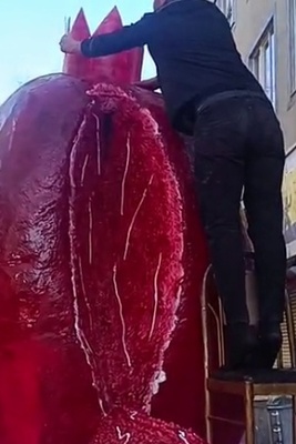 خلاقیت منحصربفرد اوستا قناد تبریزی برای پختن کیک یک و نیم تنی به شکل انار شب یلدا! هنر نزد ایرانیان است و بس غیر از اینه؟+فیلم