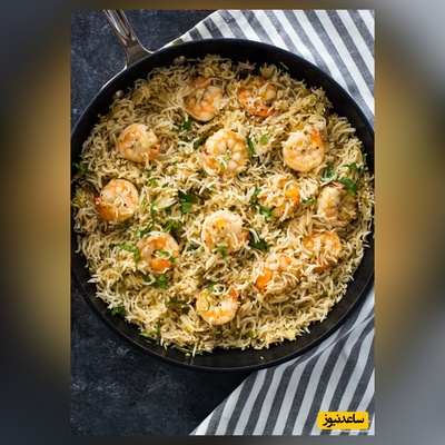 طرز تهیه سیر پلو با میگو خوشمزه ترین غذای ممکن اگه امتحانش کنی میشه غذای همیشگی سفرتون+ عکس