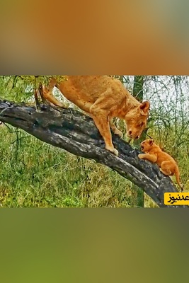 (ویدئو) مستند حیات وحش حیوانات/ لحظات ثبت شده از وقتی که ماده شیر به توله هایش آموزش بالا رفتن از درخت می دهد!