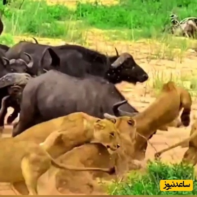 (ویدئو) مستند حیات وحش، راز بقا؛ این داستان: حمله گله بوفالو ها به گله شیر های درنده/ صحنه همبستگی و دفاع جمعی در بین حیوانات
