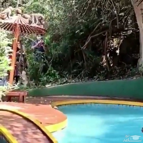 ویدئویی حیرتانگیز از آب بازی میمونها در آب استخر!