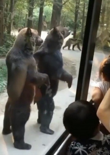 (فیلم) حرکت هوشمندانه خرسها در مقابل بازدید کنندگان