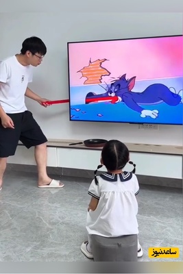 خلاقیت خندهدار و تحسین برانگیز پدر کرهای در تماشای کارتون حماسه آفرید/ این دفعه دیگه بچههارو بذارین پیش باباشون، بیشتر خوش میگذره