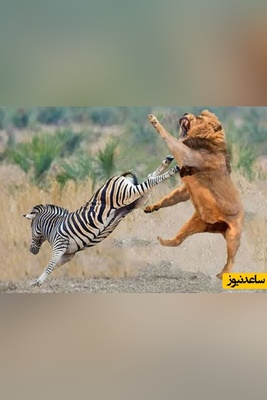 حمله ناگهانی و حیرت انگیز یک شیر به گورخر+فیلم