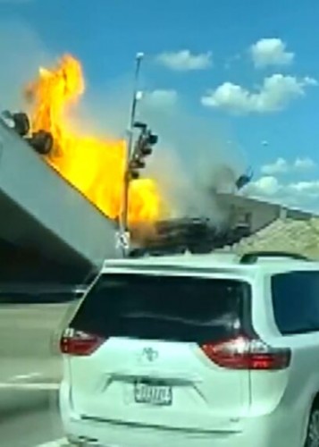 (فیلم) سقوط آتشین یک تریلی از روی پل