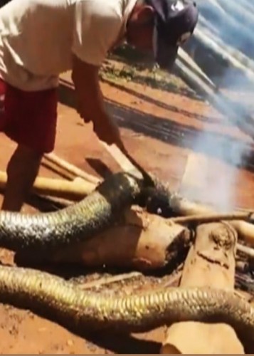 (فیلم) پختن مار پنج متری برای شام!