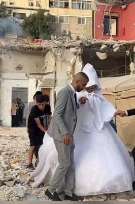 دلخراشترین لحظات؛ عروس و داماد فلسطینی قبل از آغاز زندگی مشترک در حمله اسرائیل شهید شدند +ویدیو