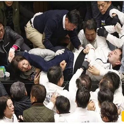 (فیلم) درگیری و زدوخورد شدید نمایندگان پارلمان تایوان