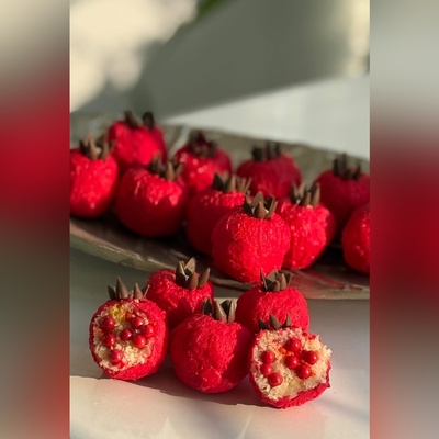 دسرهای یلدایی؛ طرز تهیه شیرینی انار بدون نیاز به فرو همزن مخصوص یلدا استیکر/ با این دسر مهمونا انگشت به دهن میمونن 😍+ ویدئو