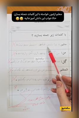 ویدئو/خلاقیت های خنده دار دانش آموز ایرانی در جمله سازی/ ماشاالله هرچی آهنگ ترند تابستون بوده حفظ کرده😂/ من آدم آرومیم بازی نکن با..