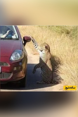 بازی بامزه «پلنگ» با تصویر بازتابشده خودش روی بدنه خودرو!