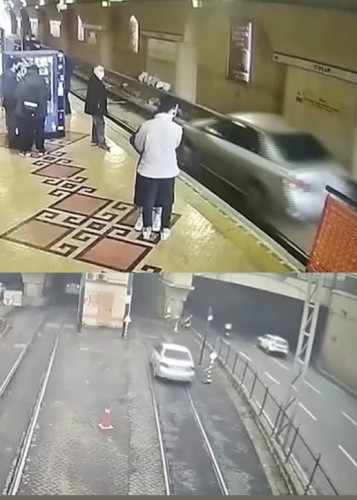 (فیلم) حرکت خودرویی که روی ریل مترو افتاد و واهمه مردم
